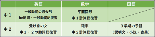 中1生も中2生も2学期は来年以降の学習の「軸」になる重要単元を学習しました。これまでに学習した内容をしっかり身につけることが次の学年で好成績を取るために必要となります。